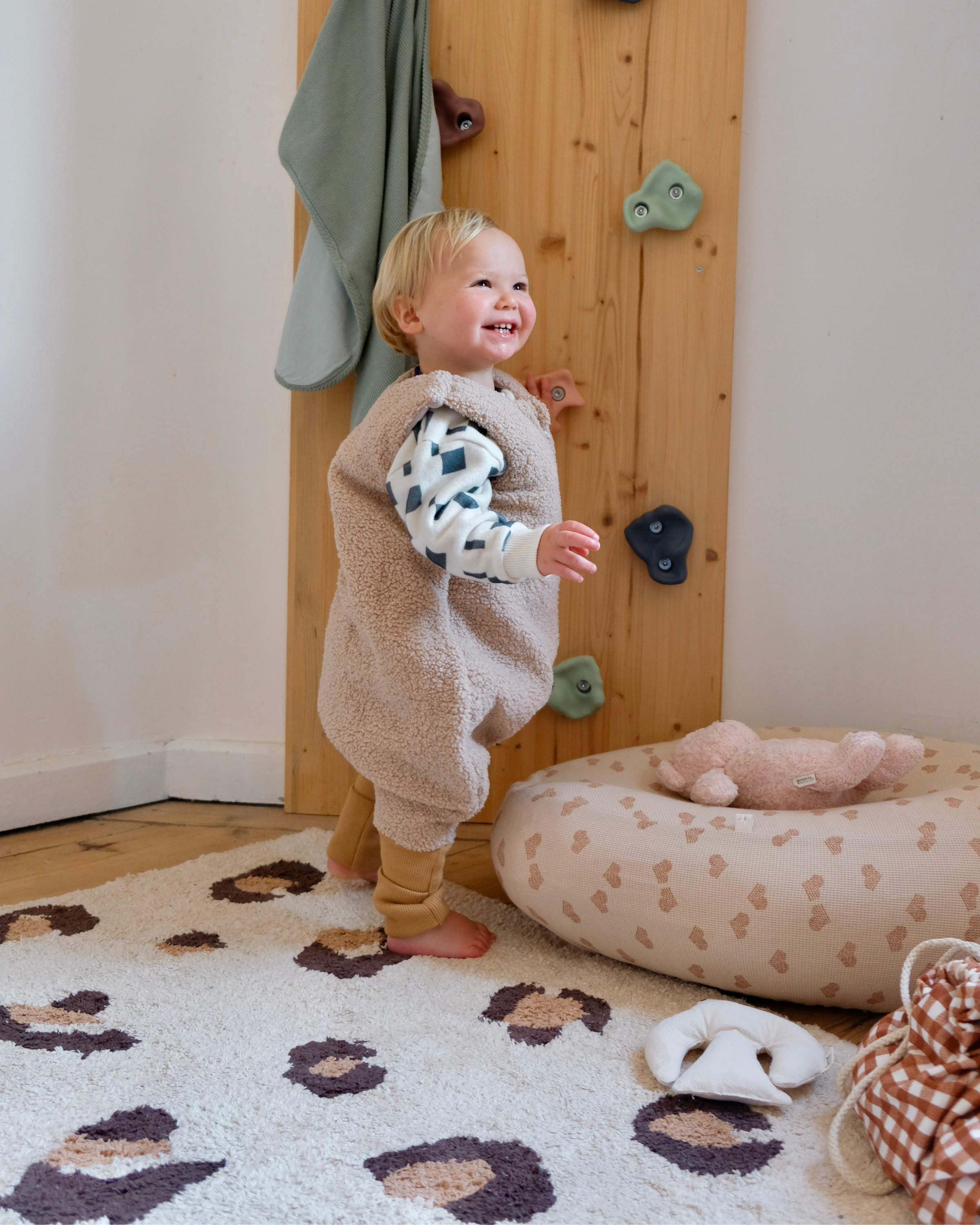 Sa maille en bouclette "teddy" saura apporter une touche de douceur dans votre intérieur et dans la chambre de votre bébé.