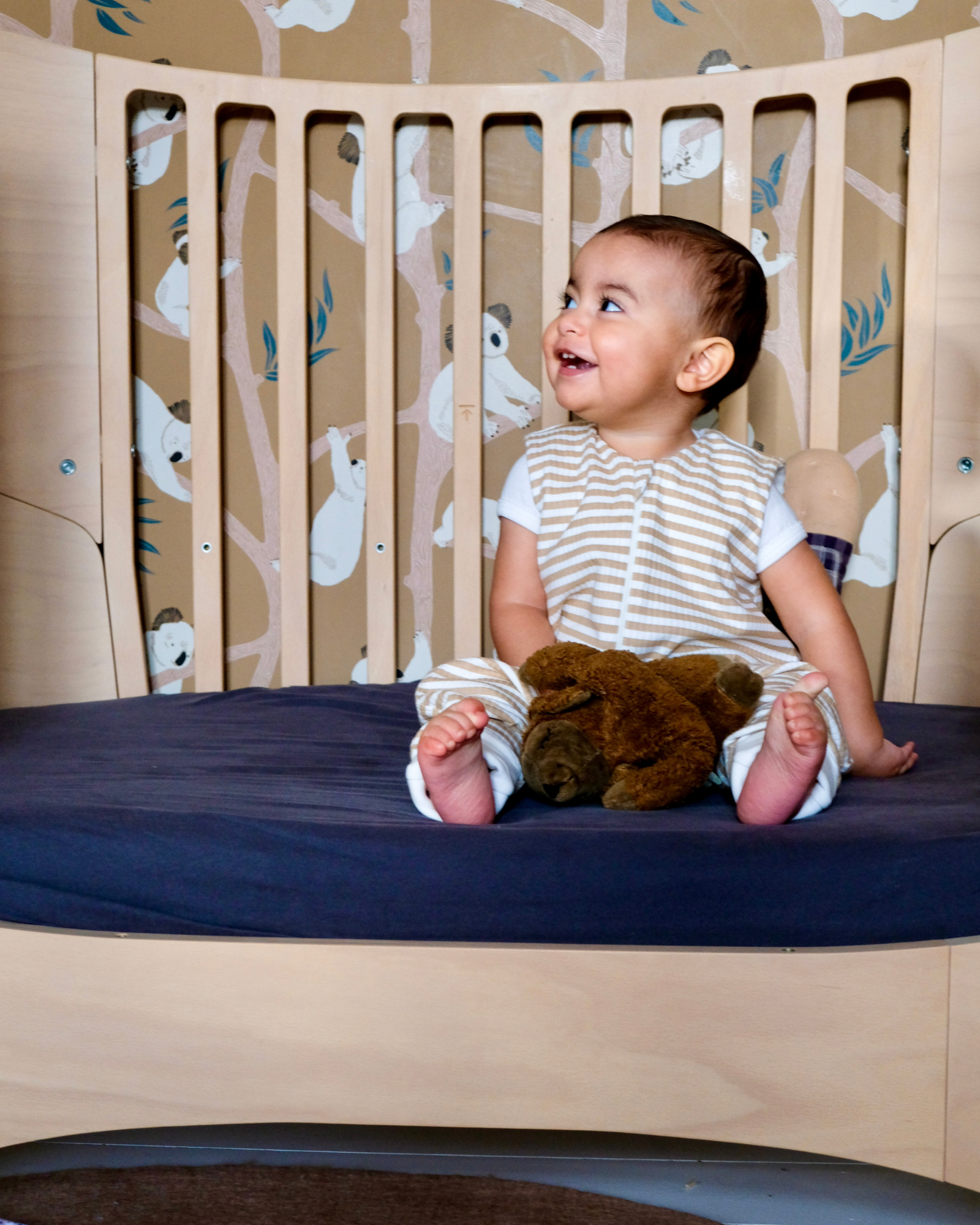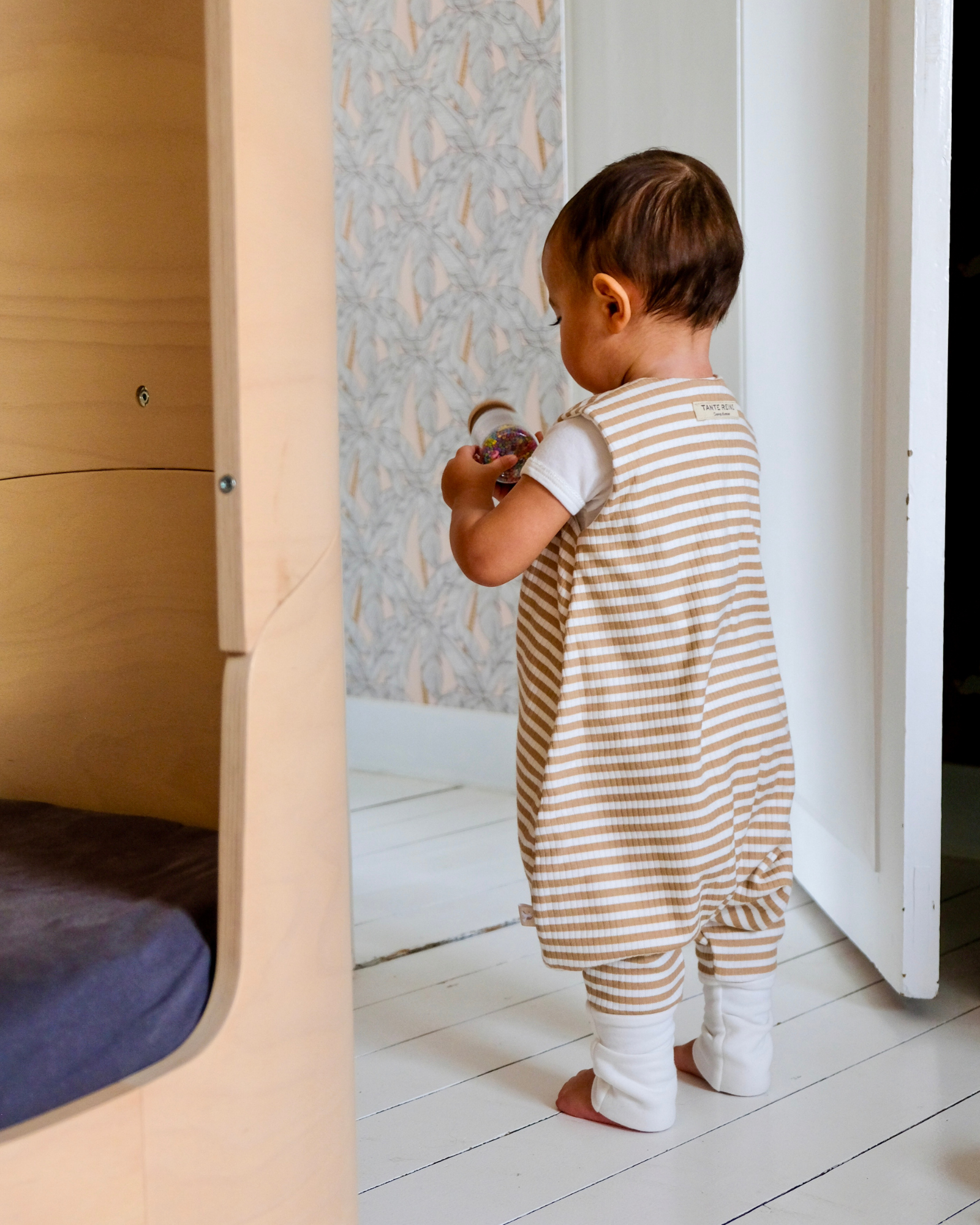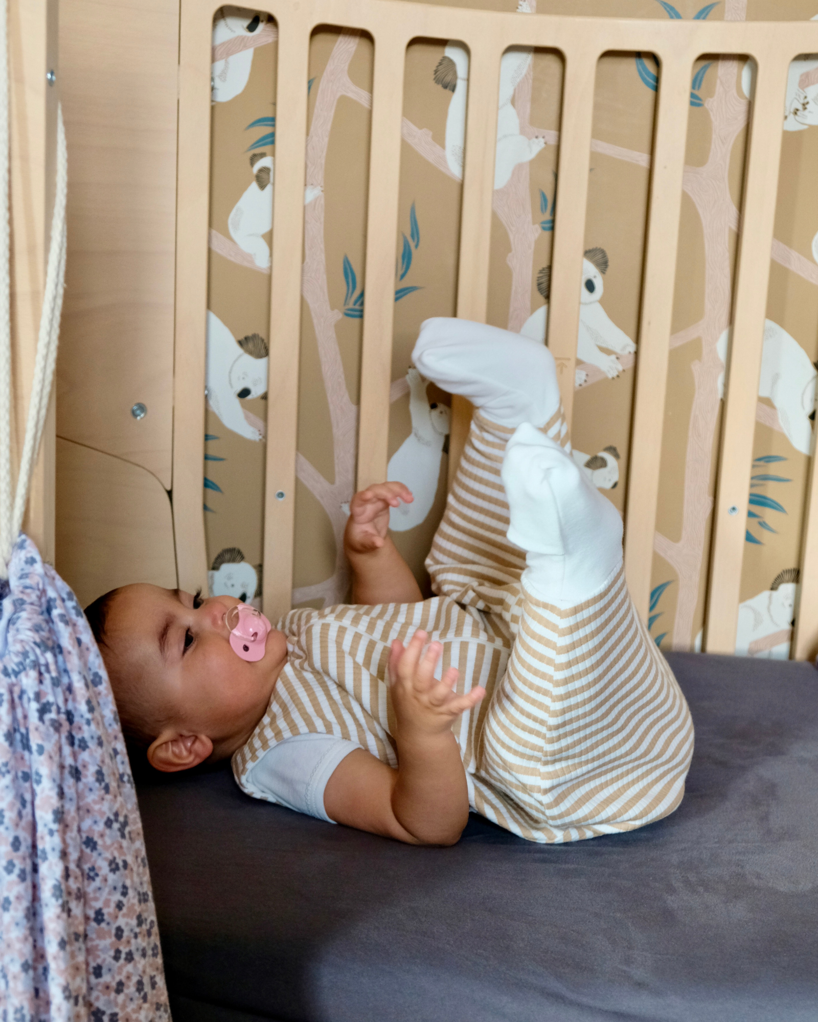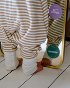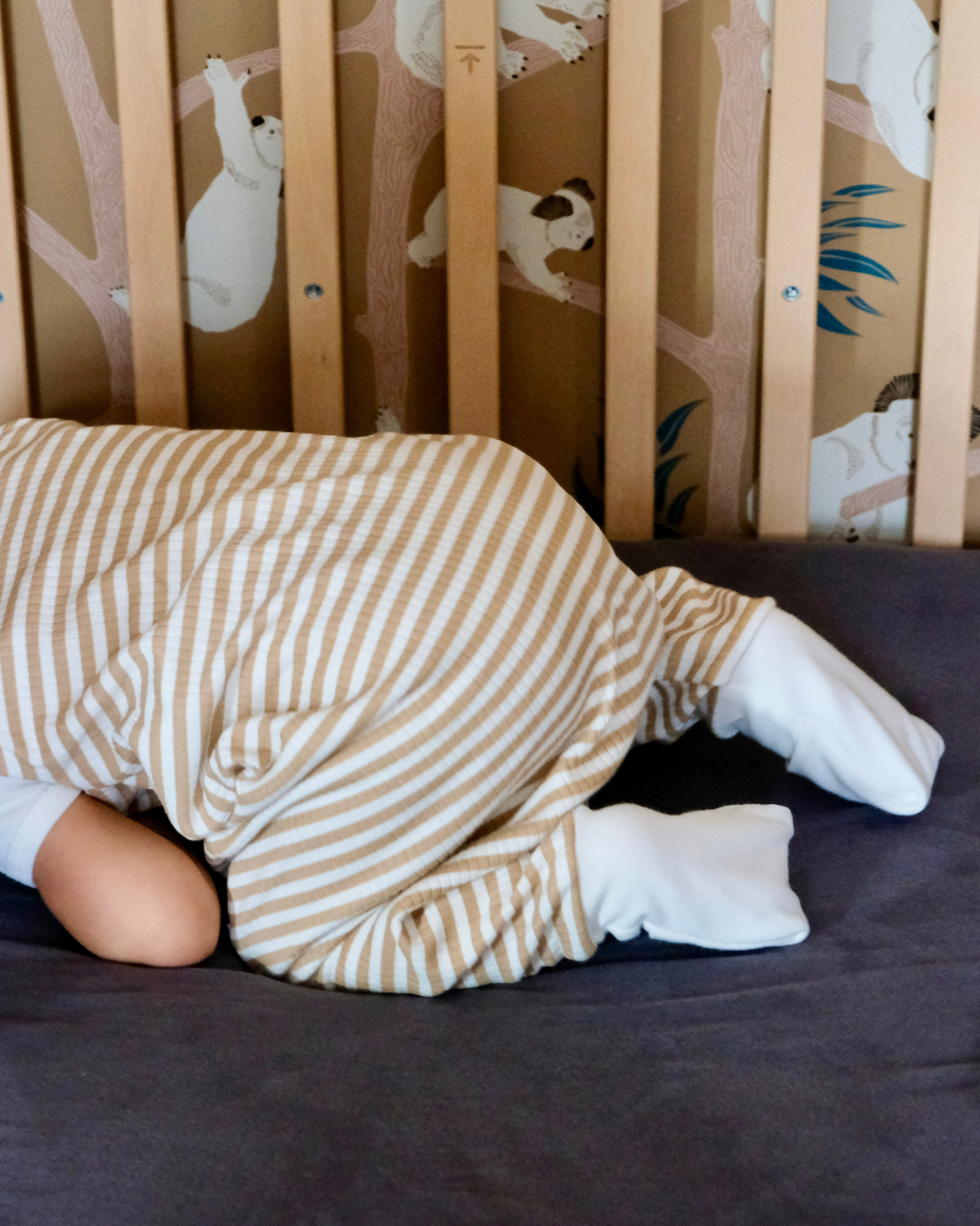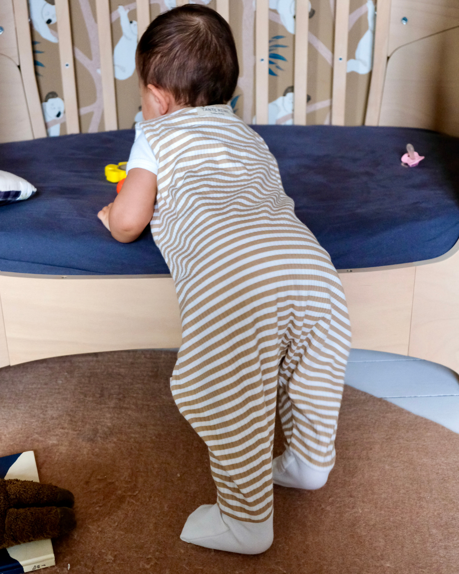 Sa maille en jersey côtelé d'un joli camel rayé saura apporter une touche de douceur dans la chambre de votre bébé.
