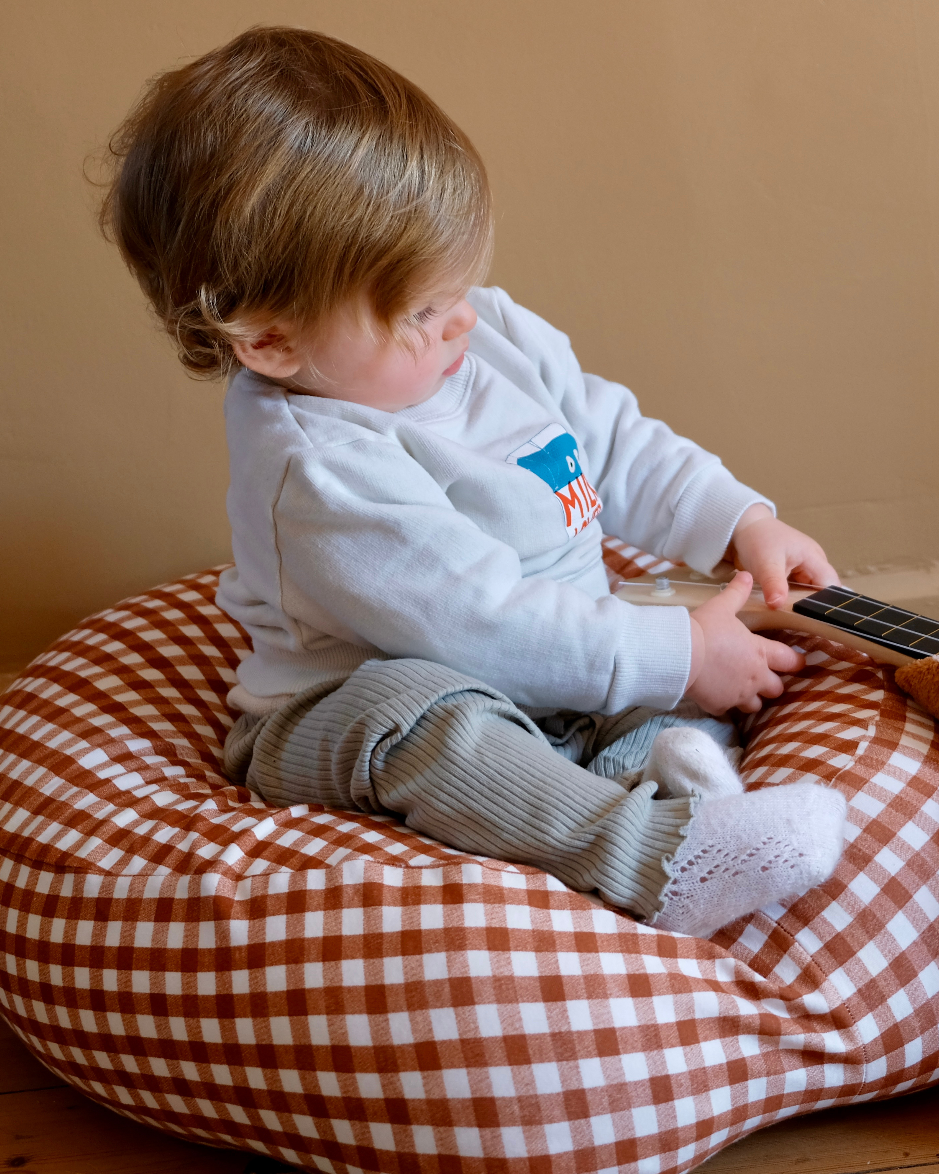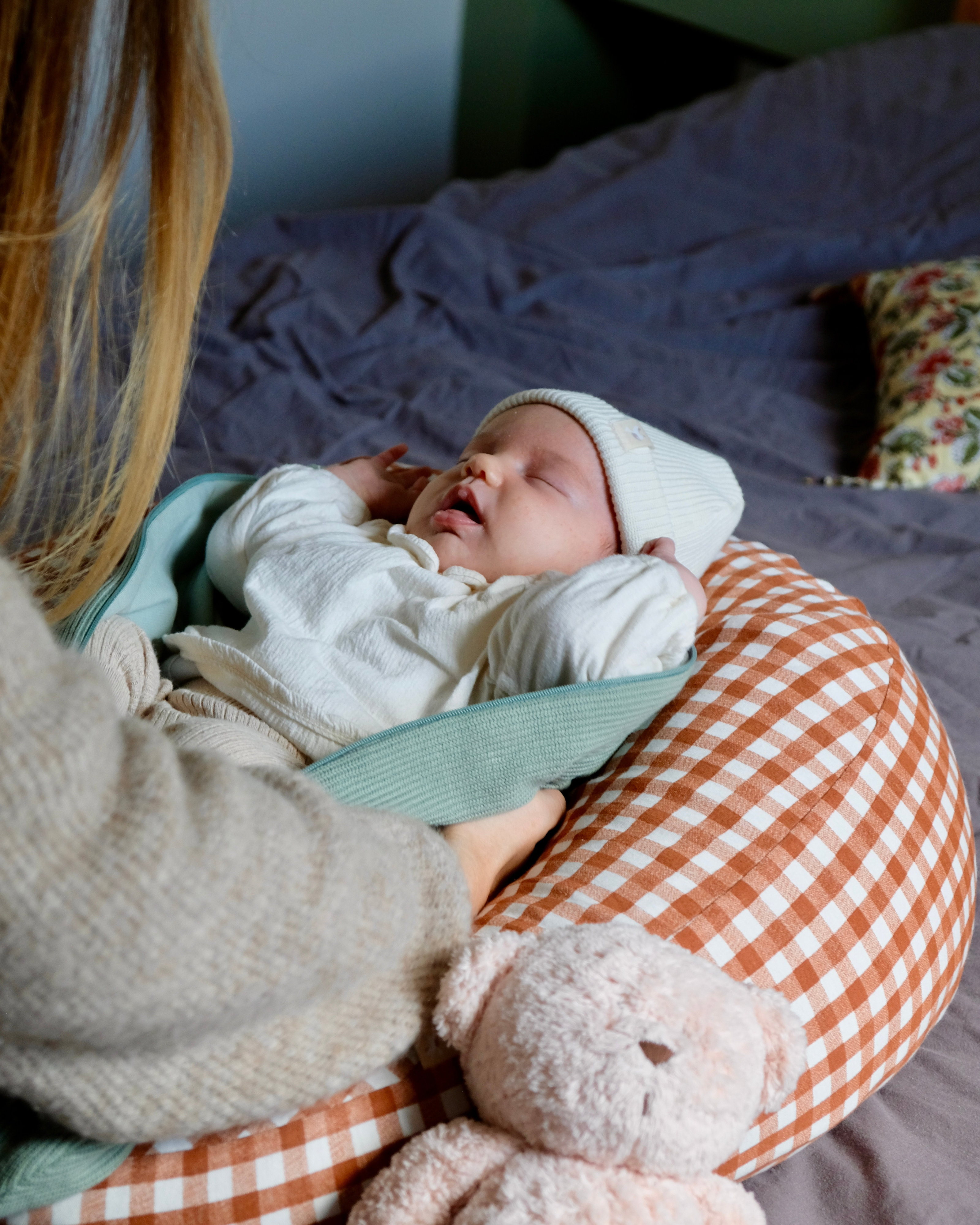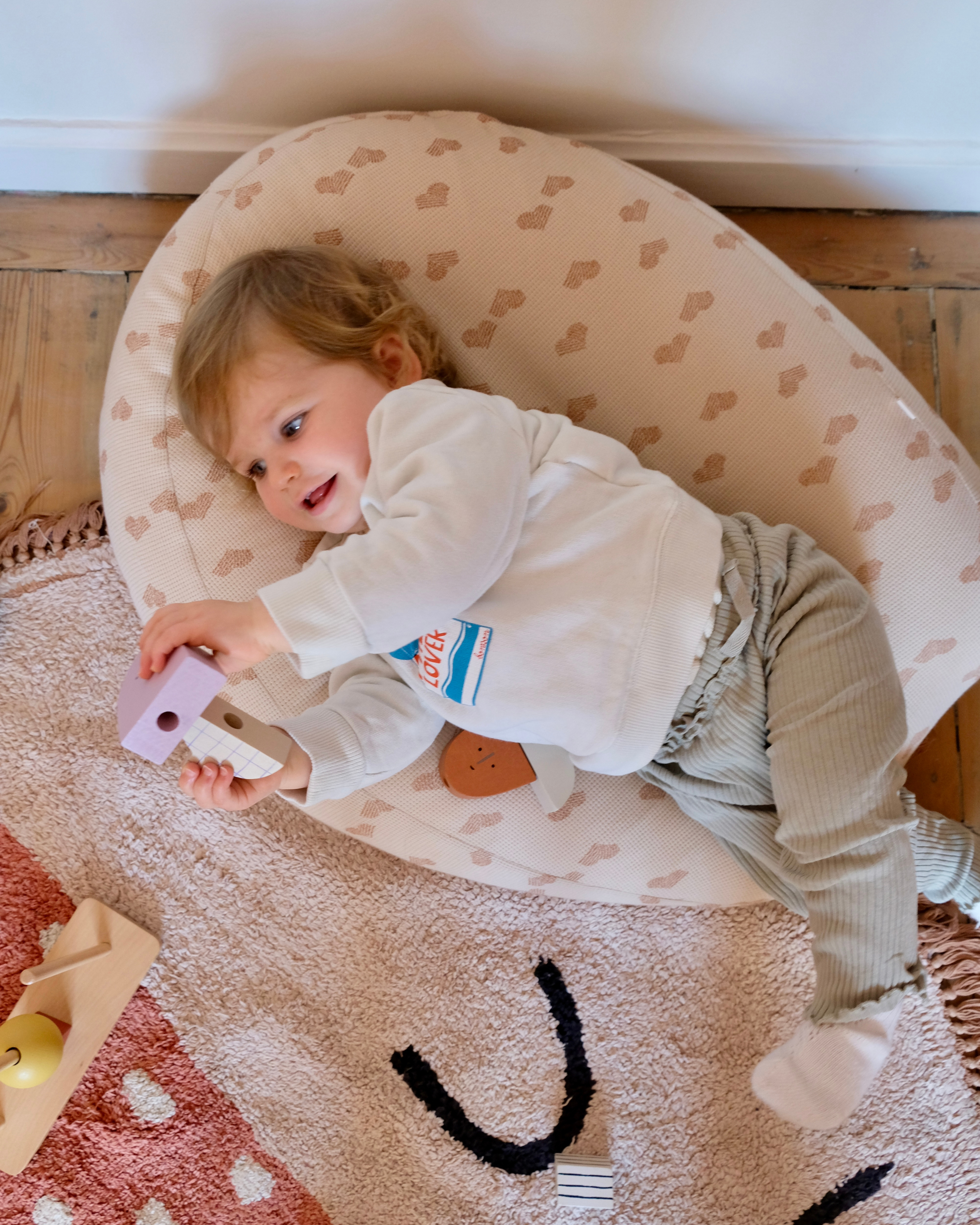 Nos nids sont des housses qui s'adaptent à tous les coussins d'allaitement, pour pouvoir poser bébé sans qu'il ne glisse au milieu. Offrez une seconde vie à vos coussins d'allaitement! Et quand vous ne voulez plus de votre coussin, notre housse se transforme en sac de jeux !