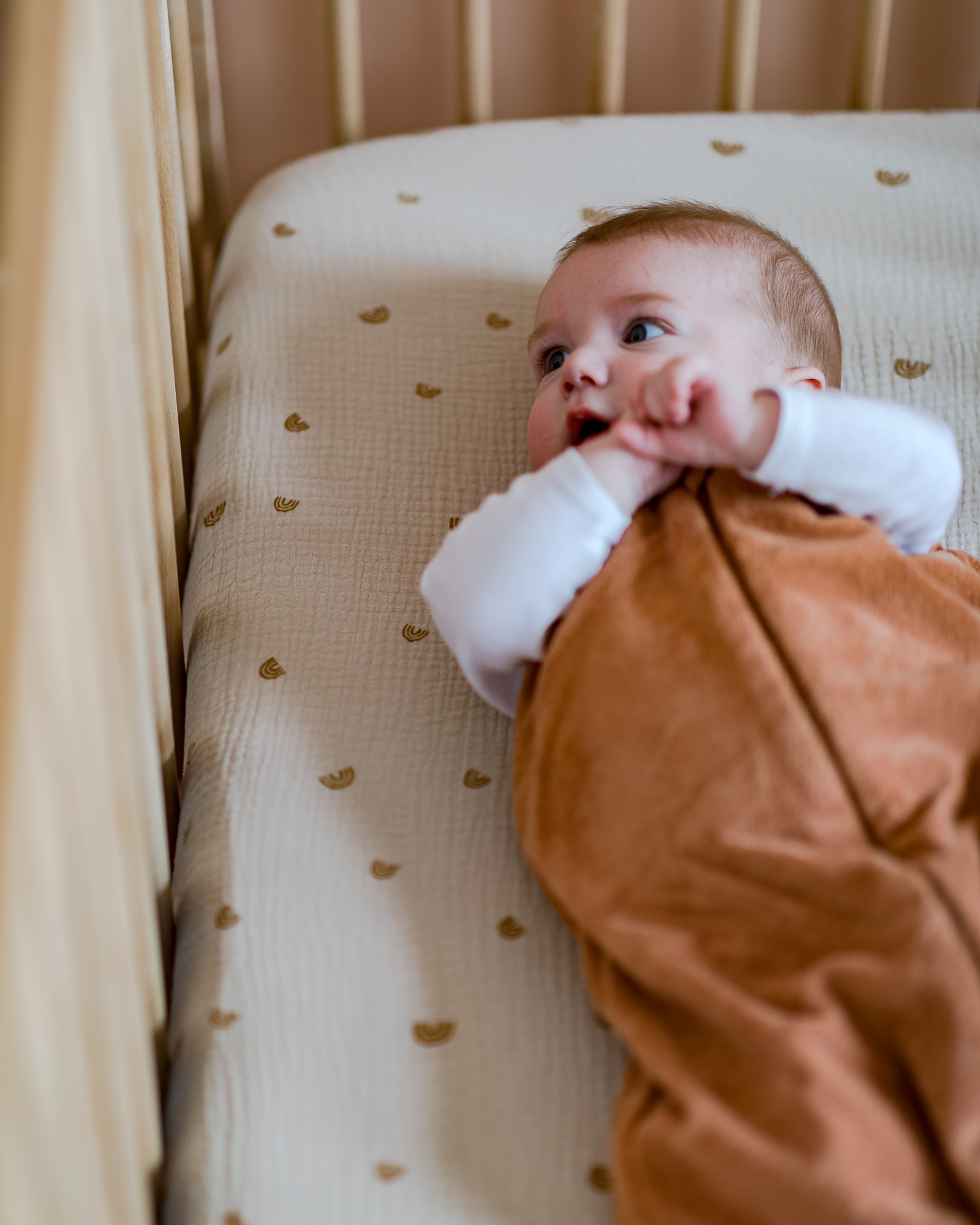 Its pretty camel toweling knit will bring a touch of softness to your little girl's or boy's room.