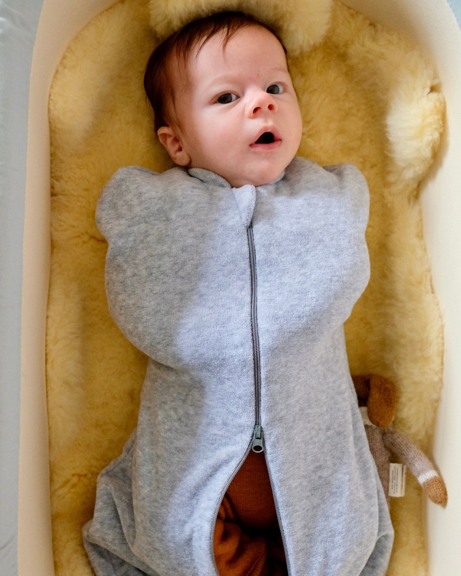 Cette gigoteuse d'emmaillotage est idéale pour apaiser votre bébé pendant ses phases de sommeil, de sa naissance jusqu'à ses 3 mois.